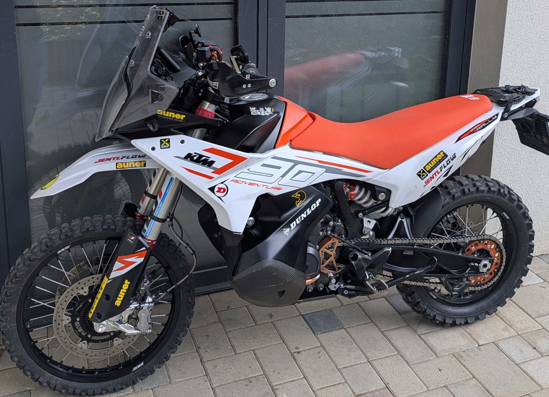 Meine 2024er KTM Adventure 790 – KTM 790 Adventure 2024/25 – First Impression – mit gut 30 Parts Richtung Offroad getuned wird 2026 weitergefahren. Ich fahre die Plattform seit dem Erscheinen der KTM Adventure 790 im April 2019. – KTM Adventure 790R erste Eindrücke -. Jahr für Jahr wurde mit Setup- Protection- und Performanceparts weiterverbessert. Zuletzt 2025 mit X-Grip Piranhas V2  Titan Fußrasten, Kunststoffhandschützern und neuer Lithium Ionen Batterie. – KTM 790 Adventure – Jentlflow Offroad Tuning 2025 – Die Teile haben sich bewährt und bleiben am Bike. Für 2026 gibt’s nur einen neuen Tuningpart, den One Gripper HEX  Sitzbankbezug für meine KTM Rallysitzbank.