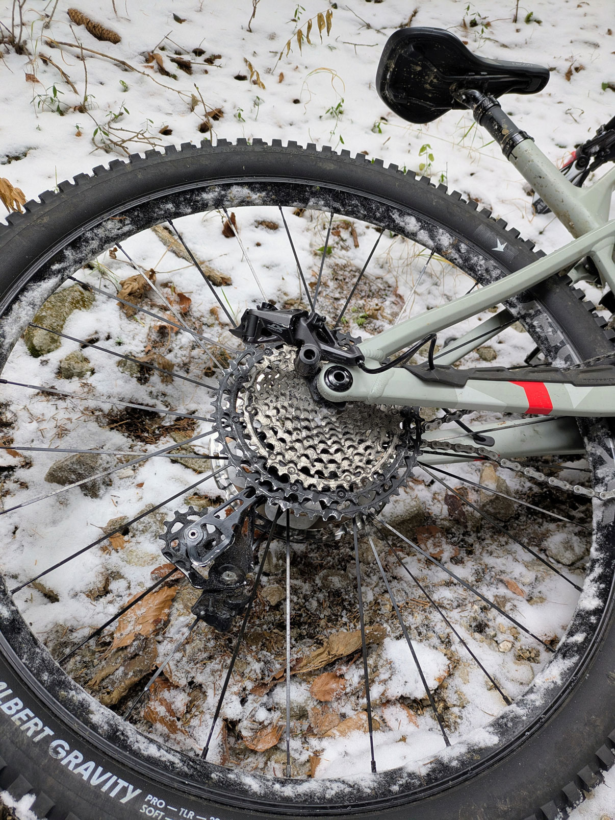 Die XT Schaltung funktioniert einwandfrei, wenn auch nicht so knackig wie SRAM. Die „old school“ Montage über ein Schaltauge habe ich eher positiv gesehen, kann man doch das Auge gut ausrichten und tauschen und schont das teure Schaltwerk. (Das bei einer SRAM Transmission richtig teuer ist) Allerdings hat es mir ohne ersichtlichen Grund das gesamte Schaltwerk aus- und zerrissen, dann in die Speichen und hinters Ritzelpaket gezogen … Ob das mit SRAM Transmission auch passiert wäre? Der Zukunft gehört wohl den robusteren, direkt am Rahmen angeschraubte UDH Schaltwerken.