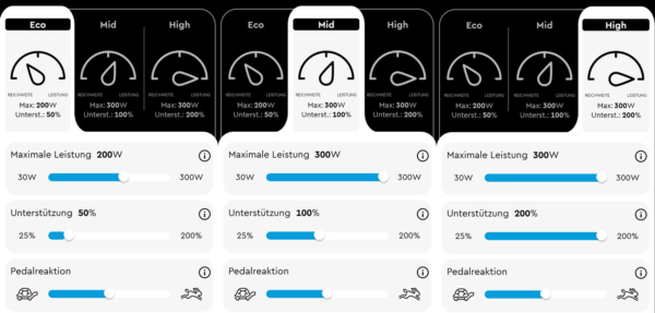 Meine erste Ausfahrt mit dem kleinen TQ Motor. Hier in der 50 Nm Version; inzwischen gibt es ihn auch mit 60 Nm. Was in zahlreichen Tests gesagt/geschieben wurde, kann ich nur bestätigen. Unspektakuläre, natürliche Unterstützung und – im Gegensatz zum Spezialized SL – wirklich lautlos. Leistungsmäßig würde ich den TQ trotz gleicher Drehmomentwerte stärker einschätzen. Vor allen geht ihm bergauf nicht ganz so schnell die Luft aus, wenn die Steigung zunimmt. Dennoch, auch hier ist man schnell am Leistungslimit und dicke Oberschenkel sind gefragt. Eine schärfere Übersetzung würde helfen. Bei gemäßigten Steigungen ist die Motorpower auch in mittlerer Unterstützung wirklich gut. Da geht nix ab. Ab besten fährt sich der Motor im mittleren Modus mit wenig Unterstützung, dafür aber voller Motorleistung. (Eingestellt in der TQ App) So bekommt man bei mehr Eigenleistung auch mehr Motorleistung, was sich „natürlicher“ anfühlt.
