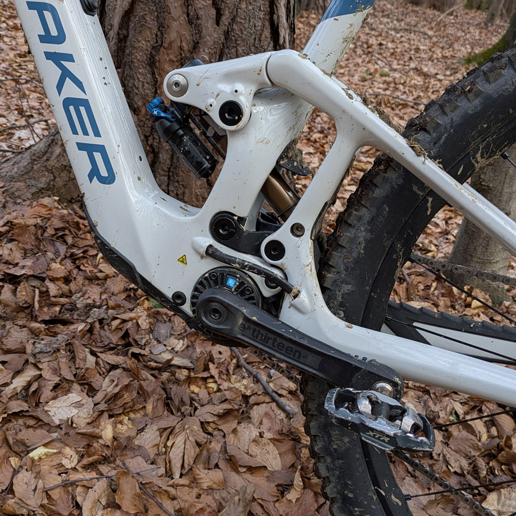 Das Light E-Bike von Mondraker gibt es seit 2024 und auch das Testbike ist ein 2024er Modell. Rahmen und Motor wurden 2026 gleich weiterverwendet, lediglich die Ausstattung ändert sich Jahr für Jahr. Highlight ist der hochwertige Stealth Carbonrahmen, der zusammen mit dem leichten TQ Motor Gewichte zwischen 18 und 19 kg je nach Modell ermöglicht. Dabei immer Federweg 160 mm vorne, 150 mm hinten und 29“ Laufräder. Konzeptbedingt sind die Komponenten eher trail- als endurolastig, das Gewicht bleibt immer im Fokus.